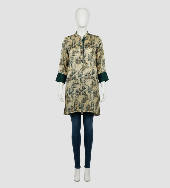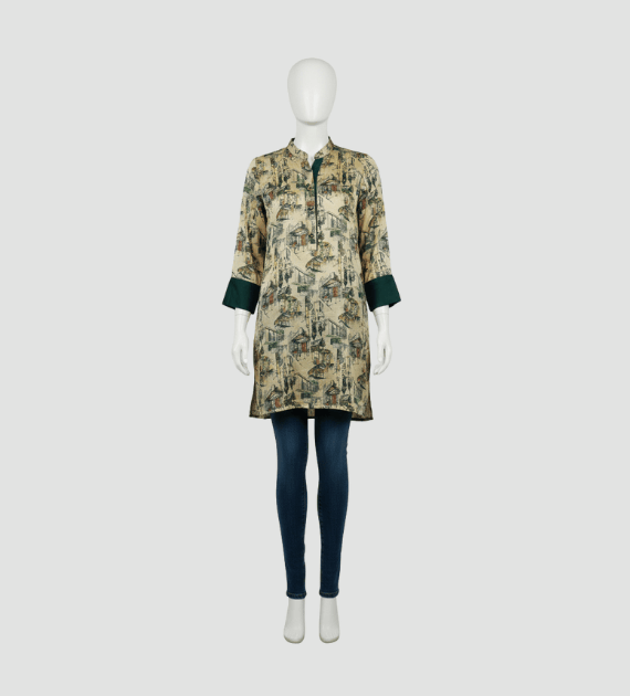 This silk shirt in golden color offers softness and comfort, knee length with full sleeves perfect for formal occasions.
